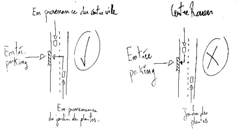 Nous vous invitons également à respecter le sens de circulation indiqué par les flèches sur l'image ci-dessus, afin de faciliter l'entrée du véhicule dans le parking.